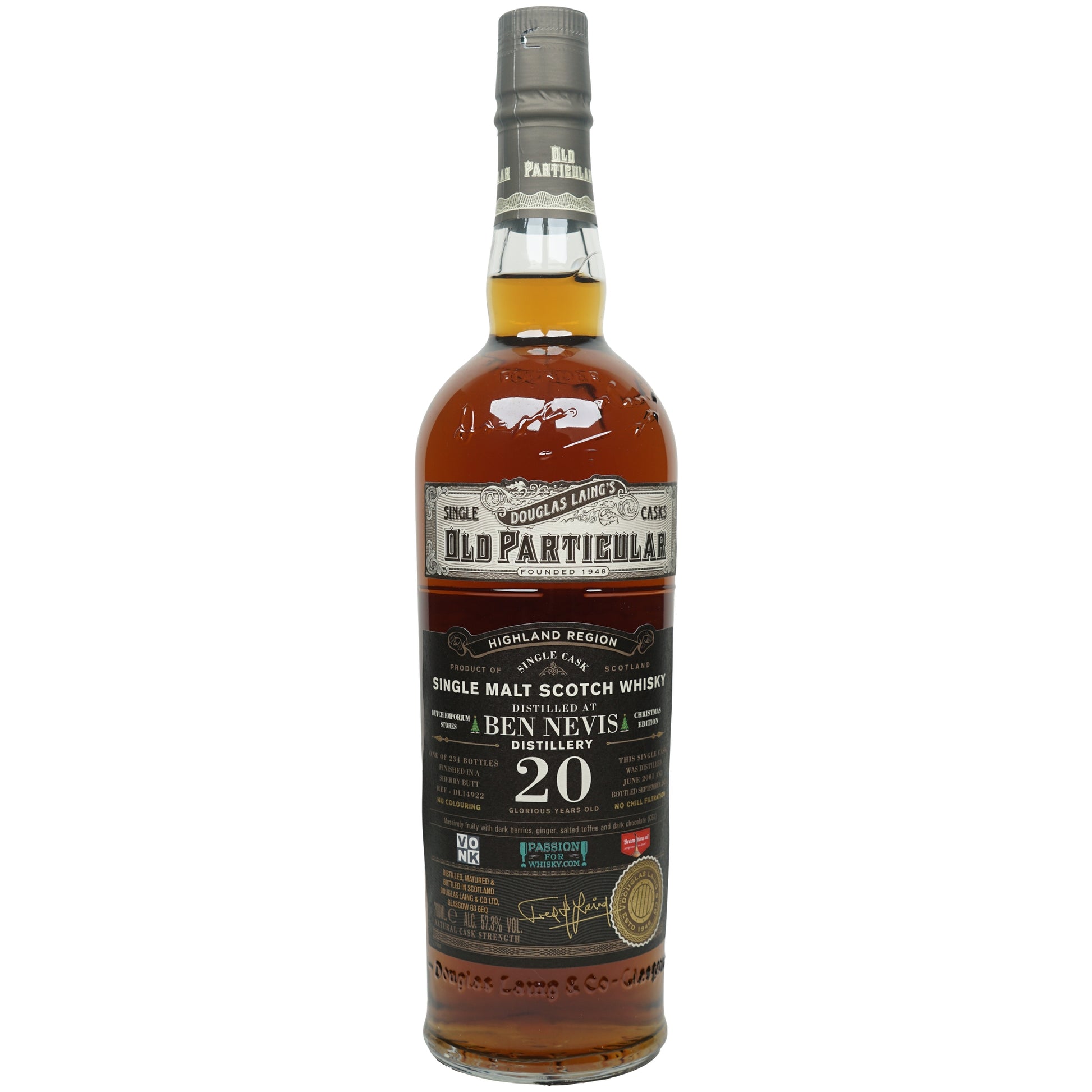 The Ben Nevis 20 Year Old 2001/2021 - Douglas Laing #14922, bottled in September 2021, comes from Scotland/Highlands and is a single malt. The bottle contains 57.3% alcohol by volume at cask strength.