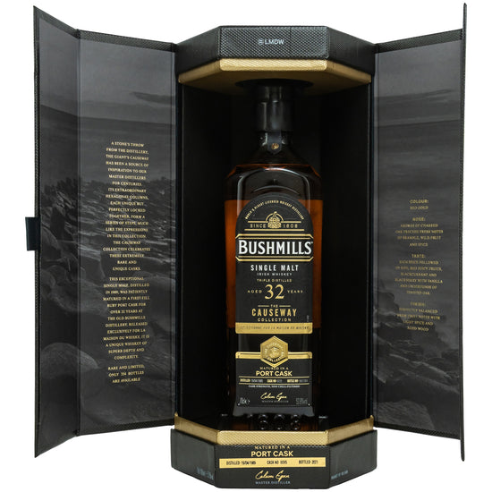 The 2021 Bushmills 32 1989/2021 - The Causeway Collection comes from Ireland. The bottle contains 53.8% alcohol by volume at cask strength.