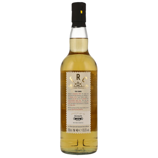 Decorated with a blue whale, the Fiji 2009/2024 was distilled over 14 years ago at Fiji's last remaining rum distillery: South Pacific. Molasses, pot stills, a rum barrel, and a crisp 65% ABV make it a luscious, exotic experience.