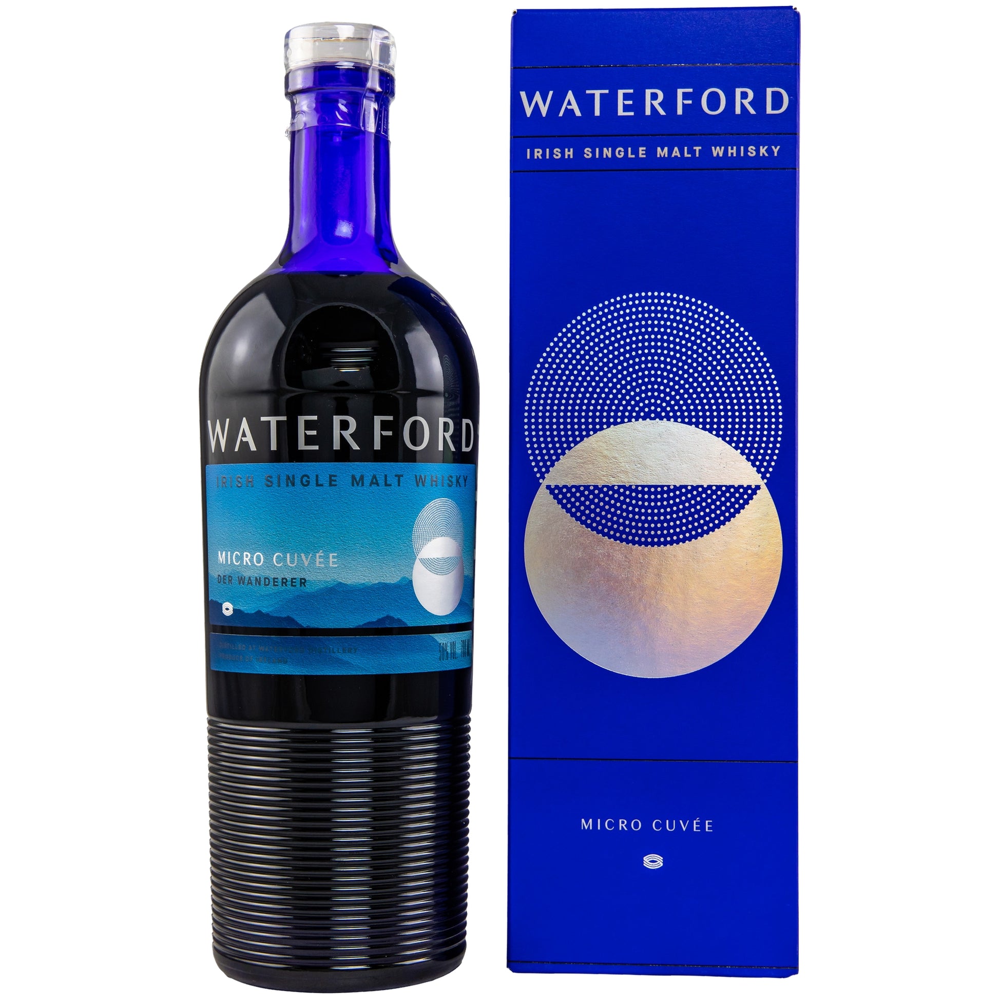 The Waterford "The Wanderer" Micro Cuvée, bottled in September 2022, comes from Ireland and is a single malt. The bottle contains 50% alcohol by volume.