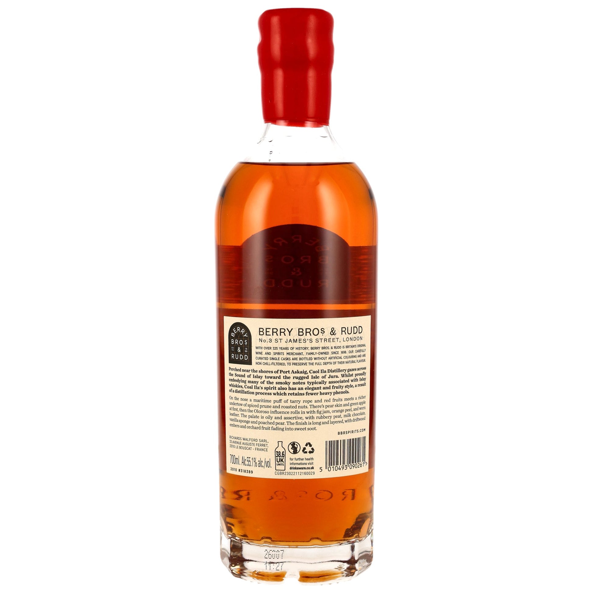 Der Caol Ila 2010/2026 ist ein 15-jähriges Single Cask, abgefüllt aus dem Oloroso-Fass. Während die Malts der Islay-Brennerei viele der für die Insel typischen Rauchnoten aufzeigen, besitzen sie zugleich eine fruchtige Eleganz. Berry Bros. & Rudd unterstrich diesen dynamischen Charakter mit dem Sherry-Finale.